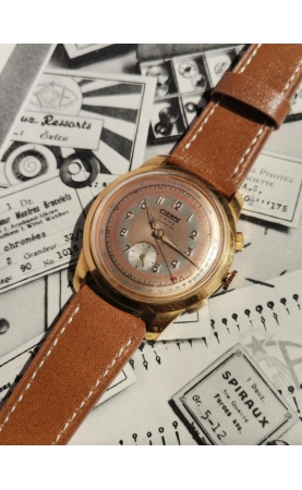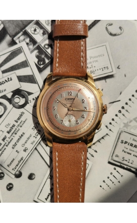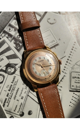 En 1946 est créée Cierpa, une centrale d'achat de diffusion d'objets divers semblable à sa concurente Manufrance St Etienne. Plusieurs articles disponibles comme des briquets, des bijourx et des articles d'horlogerie comme des calendographes nommés Calendocierpa. Notre exemplaire est un rare chronostop des années 50, de taille jumbo equipé d'un mouvement modificé sur base AS.