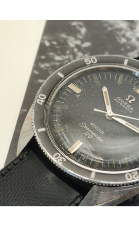 En 1948, année de naissance du Seamaster CK 2518, est un modèle à sa sortie, qui devait être un hommage au 100 e anniversaire de la société. Ce qui a rendu le Seamaster révolutionnaire à l'époque, c'est son utilisation d'un joint en caoutchouc pour sa résistance à l'eau. Les premiers Omega Seamaster étaient des affaires habillées. Après 1957, la Seamaster est une montre dite professionnelle, et plusieurs versions vont se succéder jusqu'à aujourd’hui. La Seamaster 120 est un modèle introduit en 1966-1967 au catalogue Omega, déclinée en avec mouvement mécanique à remontage manuel, et automatique avec date ou sans date. Notre exemplaire est la plus désirable : version automatique sans date, une des versions la plus recherché. Notre exemplaire est une rare double signature Meister, revendeur de montre de Zurich, seulement quelques exemplaires sont connus dans cette configuration.